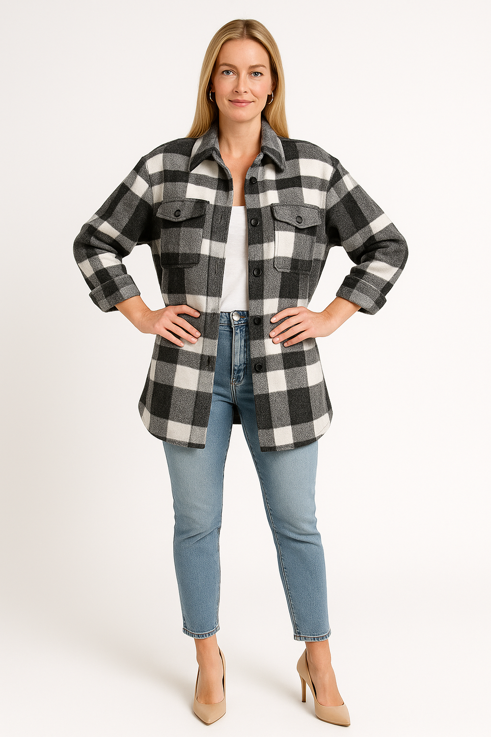 Women’s Brown Pinstripe Fitted Button-Up Blouse