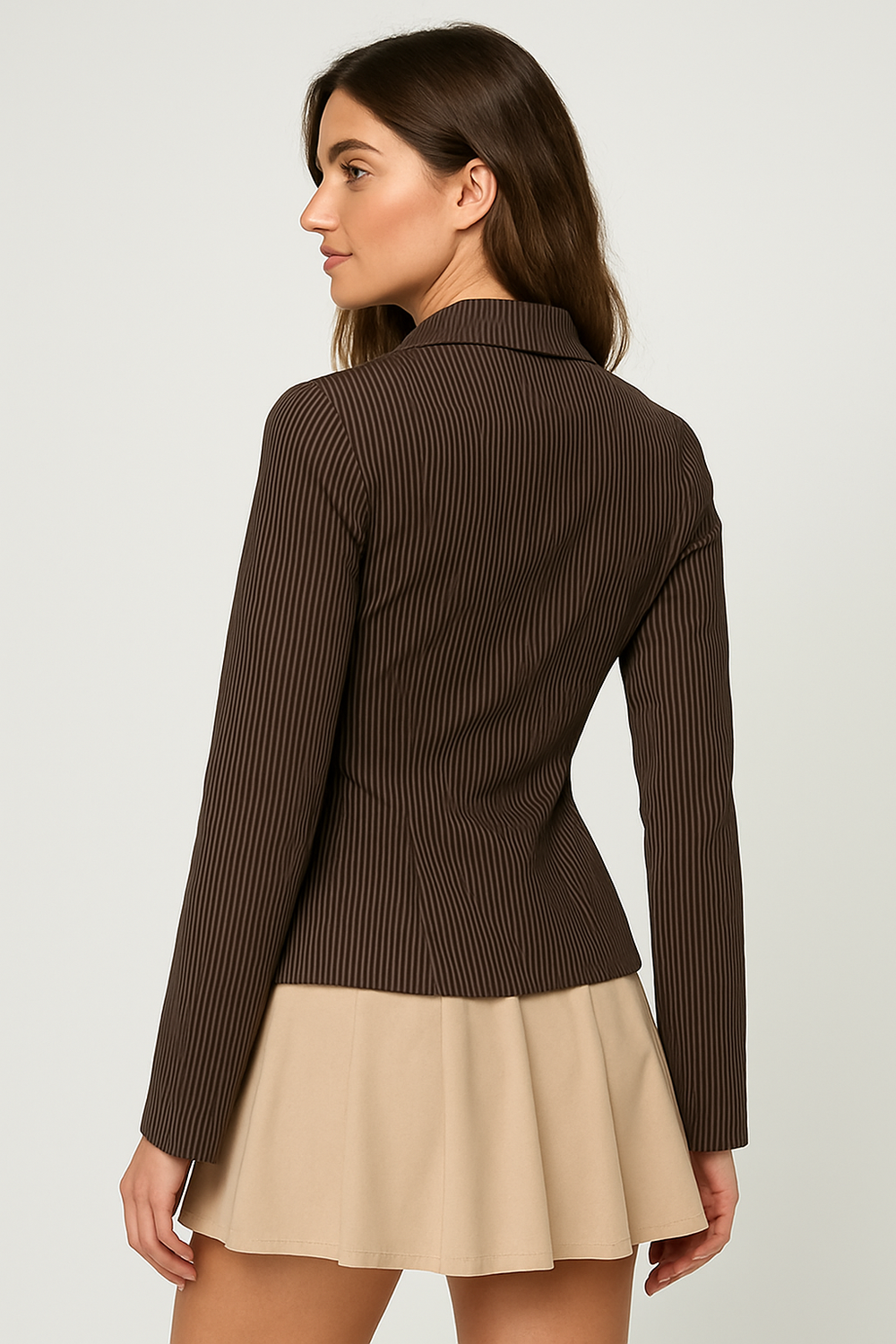 Women’s Brown Pinstripe Fitted Button-Up Blouse