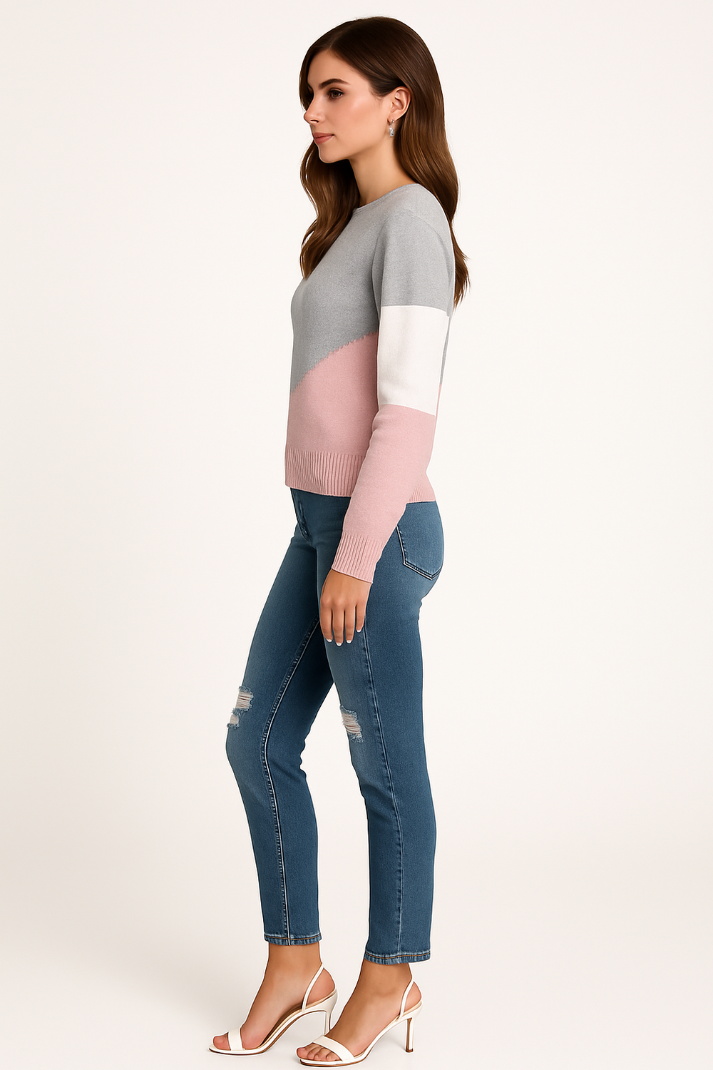 Women's Color Block Sweater - Pointelle Knit with V-Shape Panels