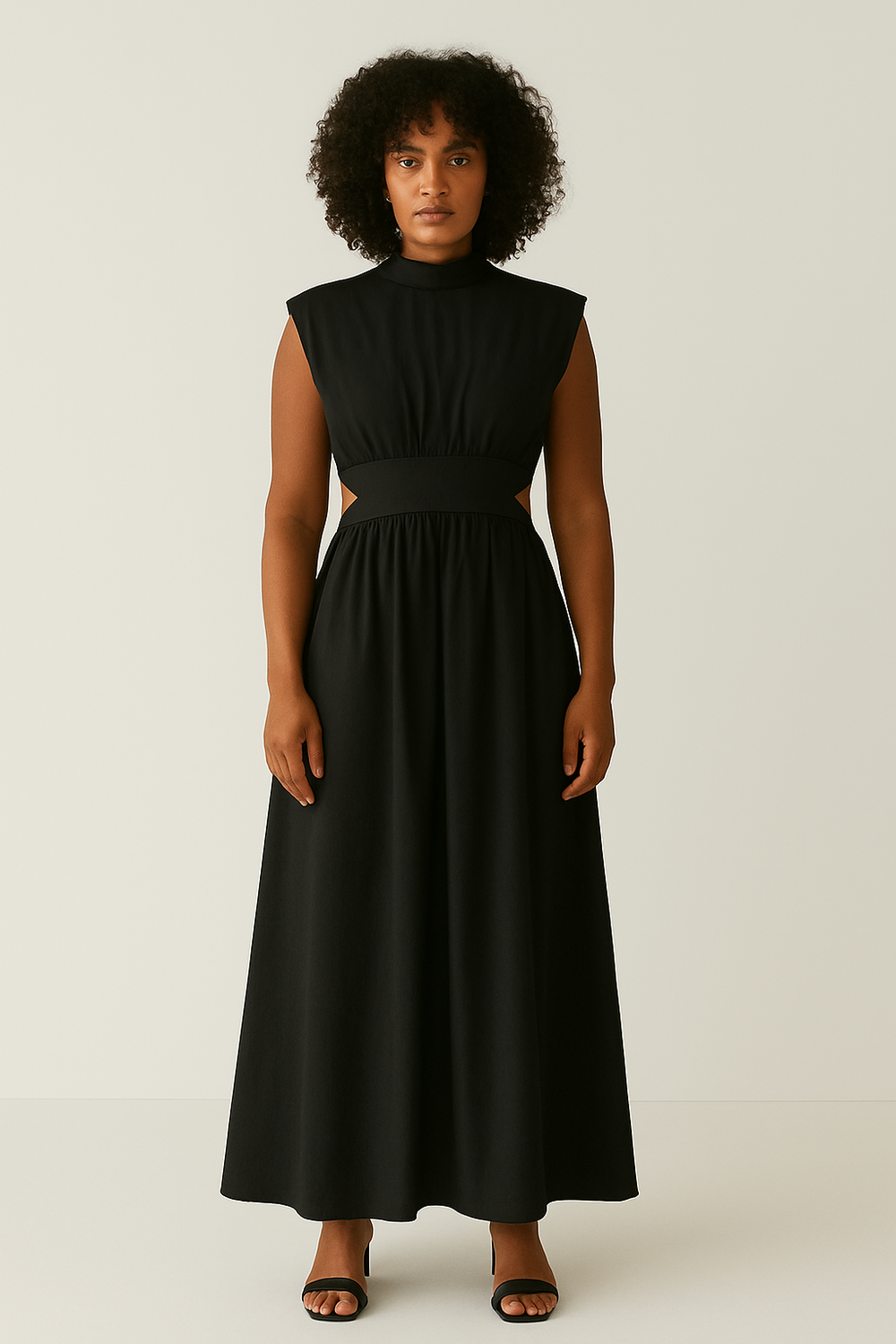 Women’s Sleeveless Maxi Dress with Cutout Waist – Elegant Evening Gown