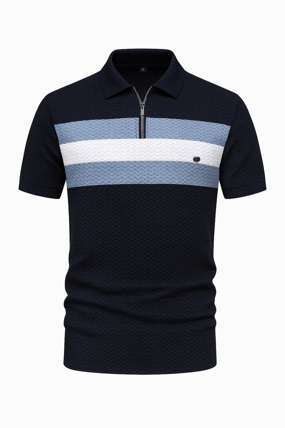 Men's Knit Polo Shirt with Zipper Collar – Striped Texture