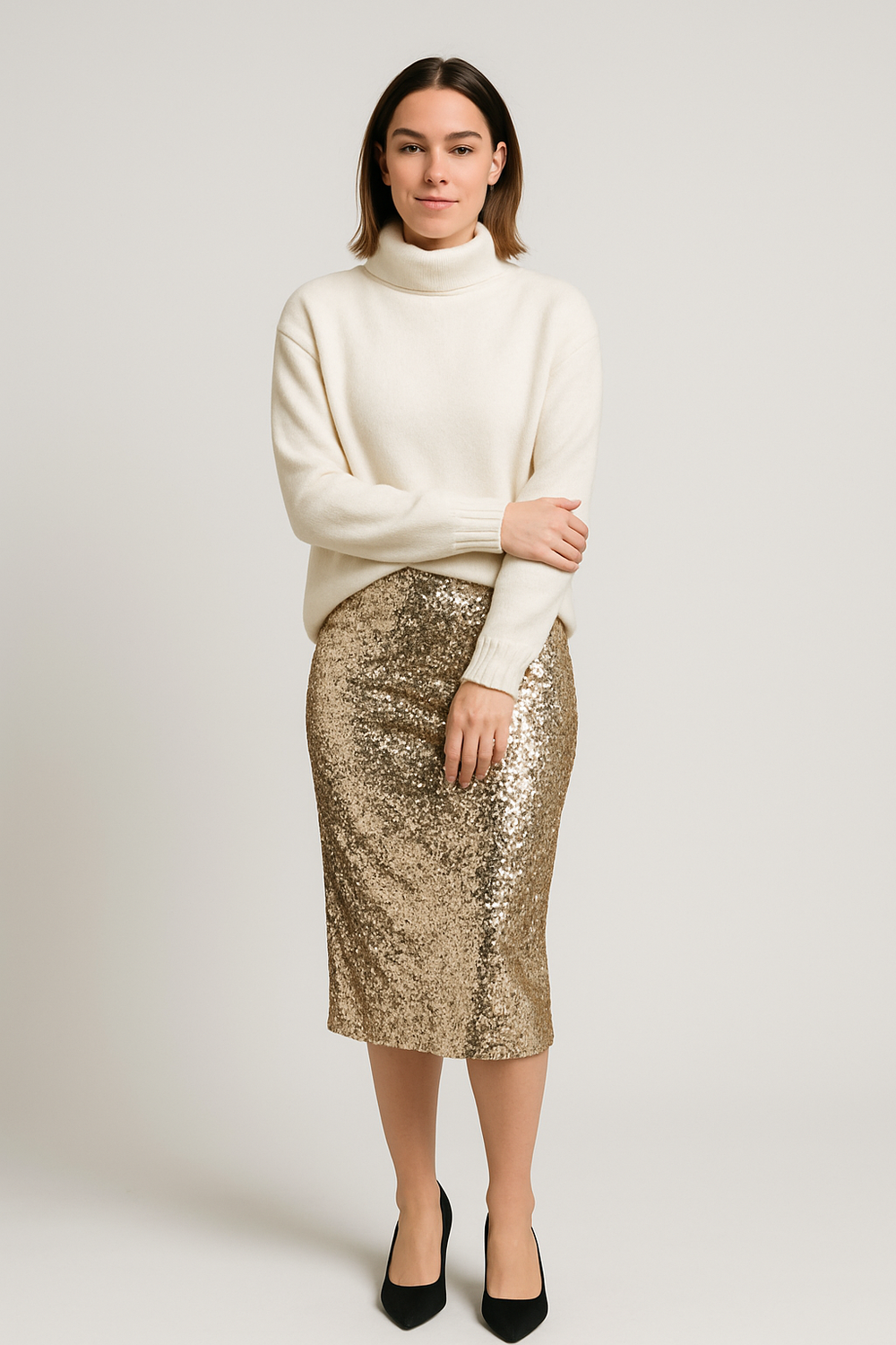 Women’s Sparkling Sequin Midi Skirt – Party & Evening Wear