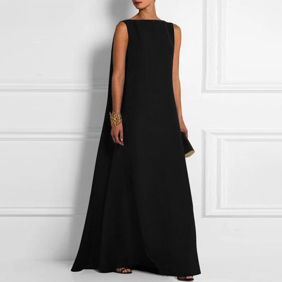 Step into elegance with this sleeveless evening gown, tailored to flatter with an A-line silhouette that moves effortlessly. Designed for formal occasions, it offers grace in every step with its flowing fabric and timeless structure. Whether at a gala, wedding, or special celebration, this gown ensures a composed and refined presence.