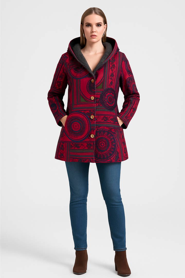 Brighten up grey winter days with this women’s floral print hooded jacket. Its colorful pattern brings a cheerful touch to the season, while the warm lining and hood keep you comfortably shielded from the cold. Perfect for everything from city walks to relaxed get-togethers, it blends practicality with eye-catching charm.