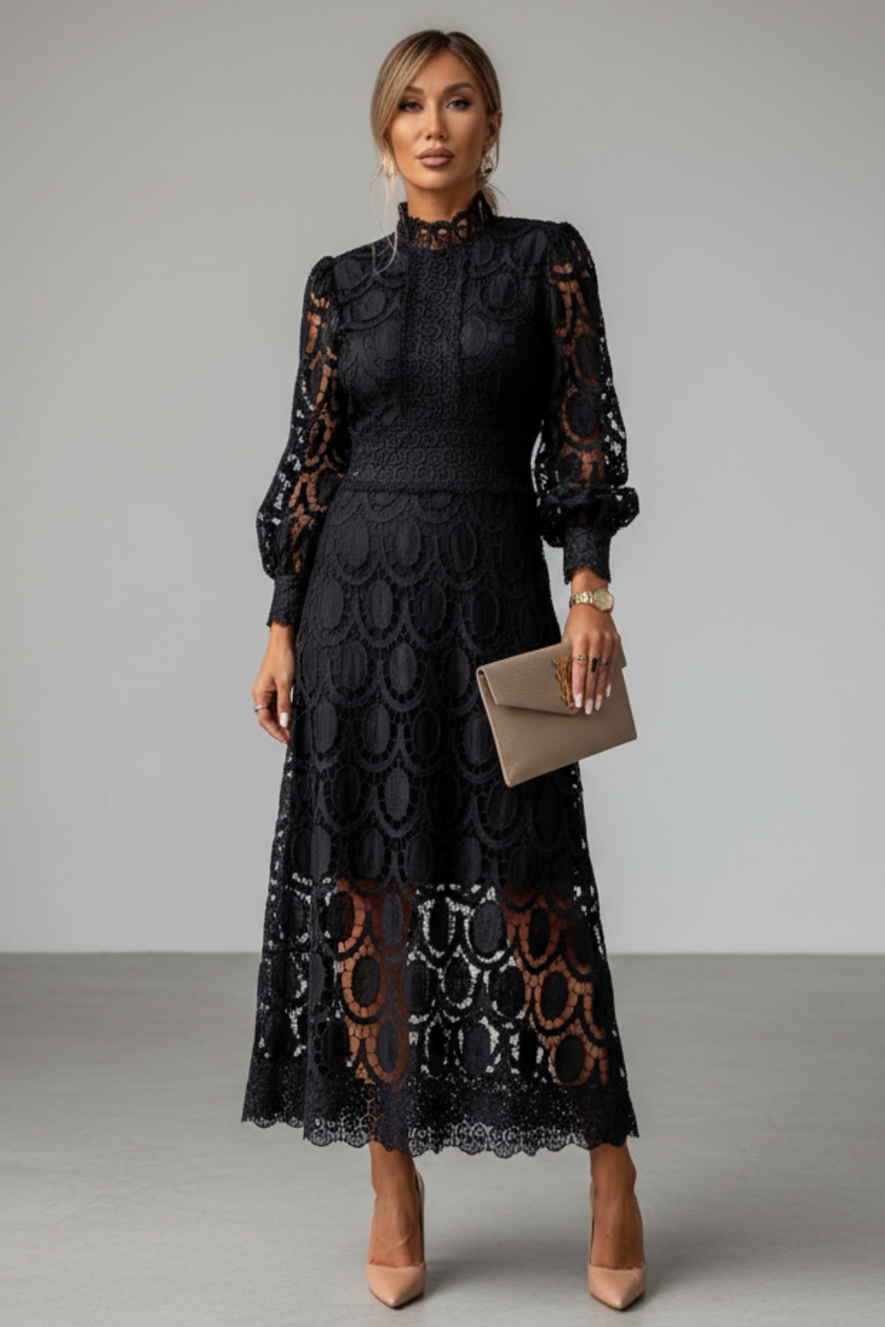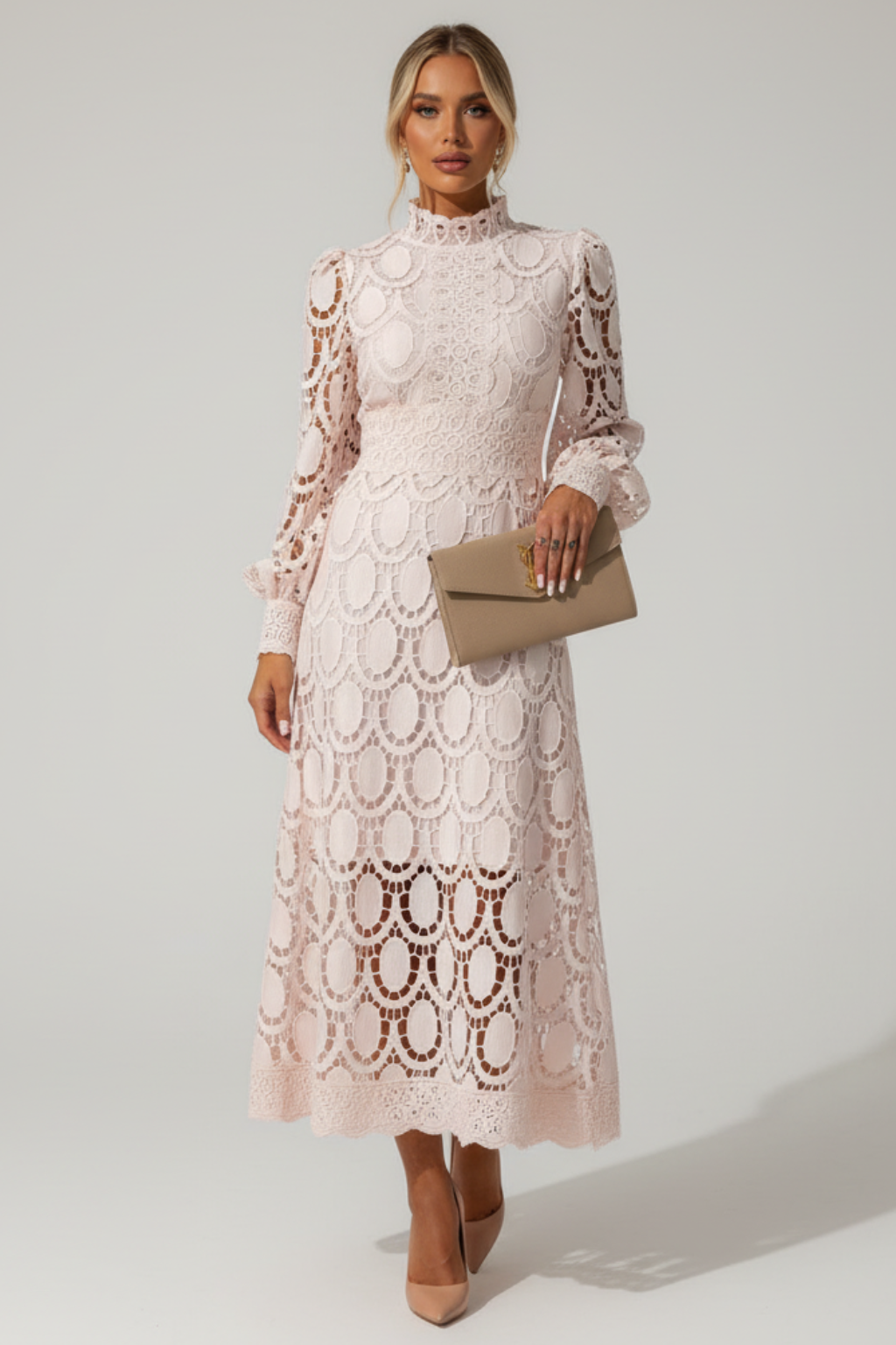 Women’s Eyelet Midi Dress with Flutter Sleeves