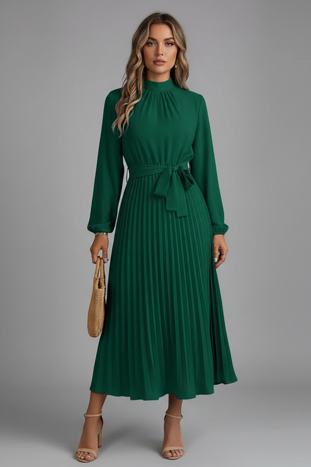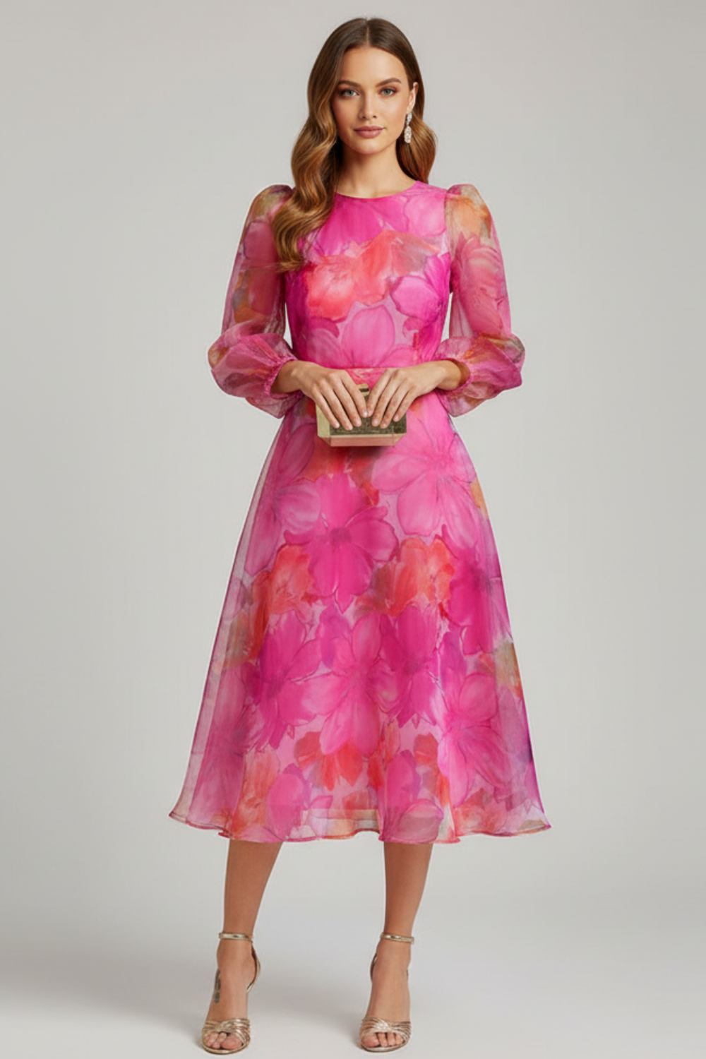 Geometric Print V-Neck Long Sleeve Midi Dress