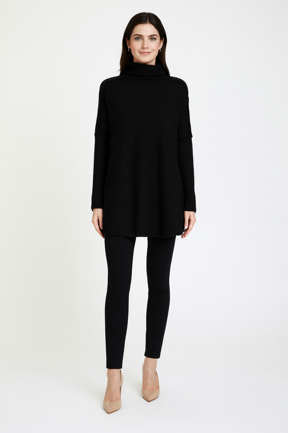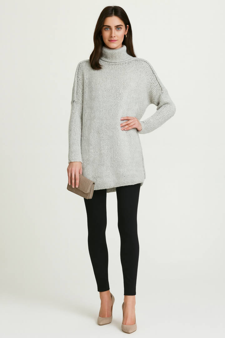Bring cozy elegance to your winter wardrobe with this women’s long turtleneck sweater, combining warmth with a relaxed silhouette. The high neckline adds extra protection from the cold, while the elongated cut creates a modern, casual look that’s both versatile and stylish. Perfect for pairing with leggings, jeans, or boots, it’s an effortless choice for chilly days.